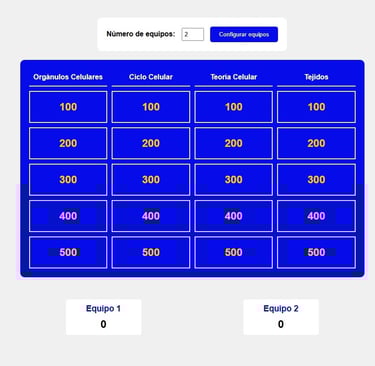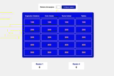 Jeopardy sobre la célula, sus orgánulos, ciclo celular y los tejidos. Puedes elegir los grupos que juegan