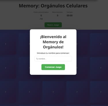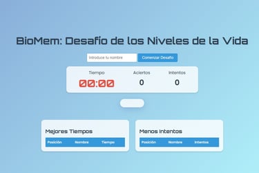 Juego de Memory para emparejar cada elemento con su nivel de organización de la materia correspondiente