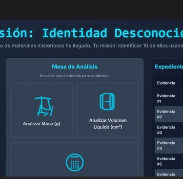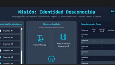En esta ocasión en el laboratorio de CSI Flors han aparecido varios objetos encontrados en la escena de un robo y deberán ser identificados por los aspirantes, aplicando sus conocimientos sobre DENSIDAD. A la finalización de la investigación deben enviar su informe al Inspector Jefe en formato PDF