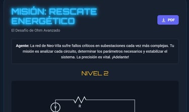 En esta misión, los agentes del CSI Flors deberán aplicar sus conocimientos sobre la ley de OHM para superar la prueba. Deberán enviar su informe en PDF para el inspector jefe