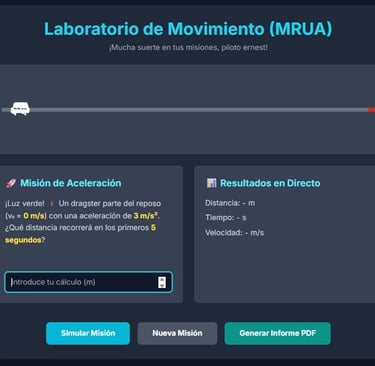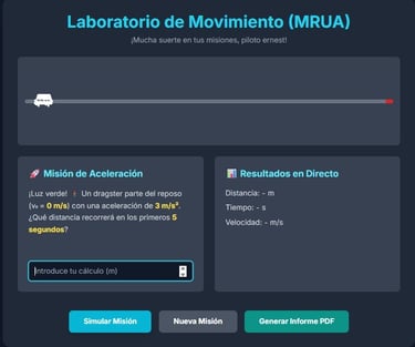 En este laboratorio, se investigan las velocidades, aceleraciones o frenados (MRUA) en diferentes posibles accidentes de tráfico. Cada aspirante a la finalización de su estudio enviará su informe