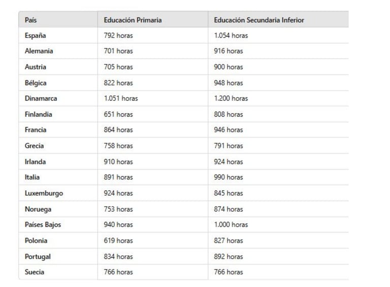 Resumiendo: nuestro alumnado es el que más horas hace al año y estan distribuidas en menos días. Una locura, ¿no?